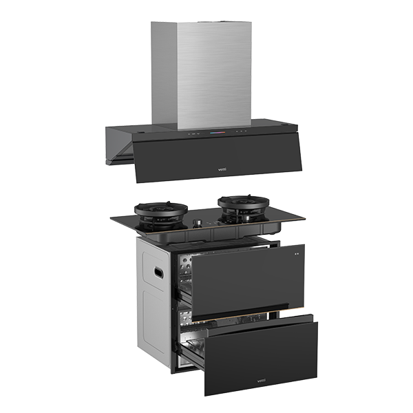 盛菜餐具原地伸手可取,美食出锅不再手忙脚乱;烟灶智慧联动,点火瞬吸,烹饪更从容